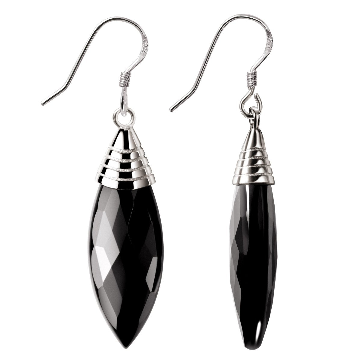 Beautiful earrings with faceted long pear drop Shaped Black Agate gemstones in a 925 Sterling Silver setting The faceted gemstones catch all the light and look beautiful and very elegantíÈ _...