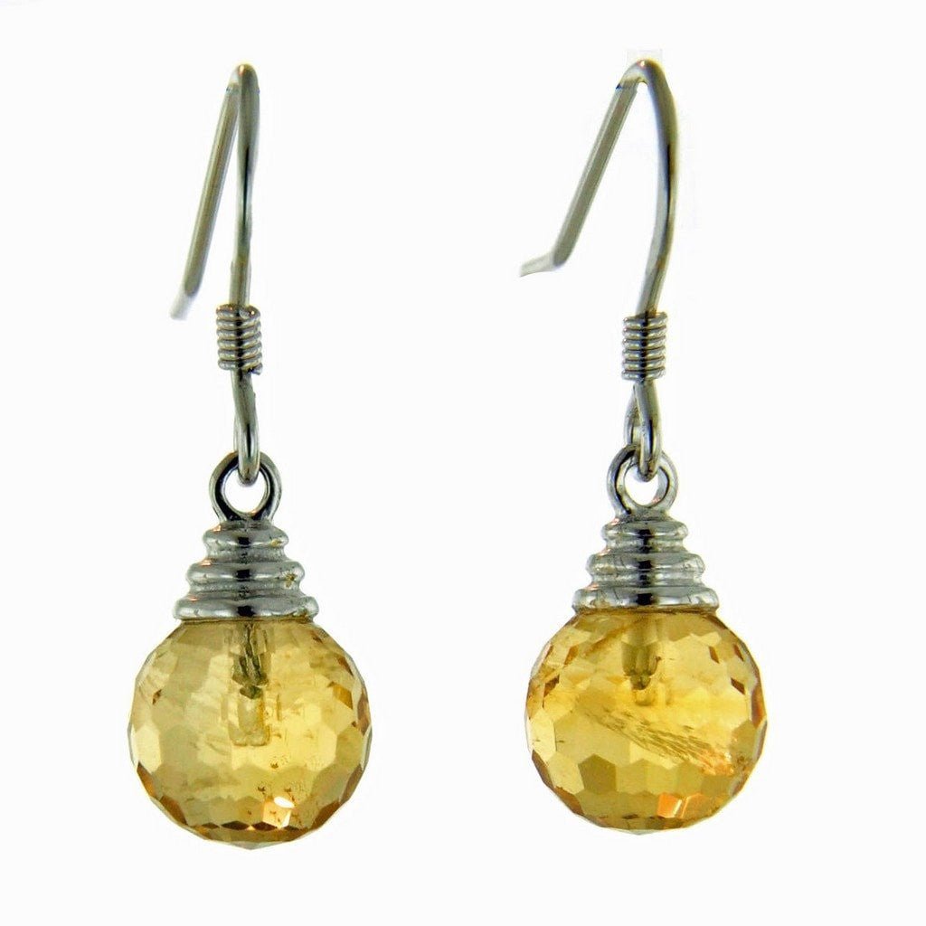 Very dainty and elegant earrings made with A+ grade yellow Citrine gemstones which have been faceted in a ball shape and mounted on 925 Sterling Silver. The earrings have smooth...