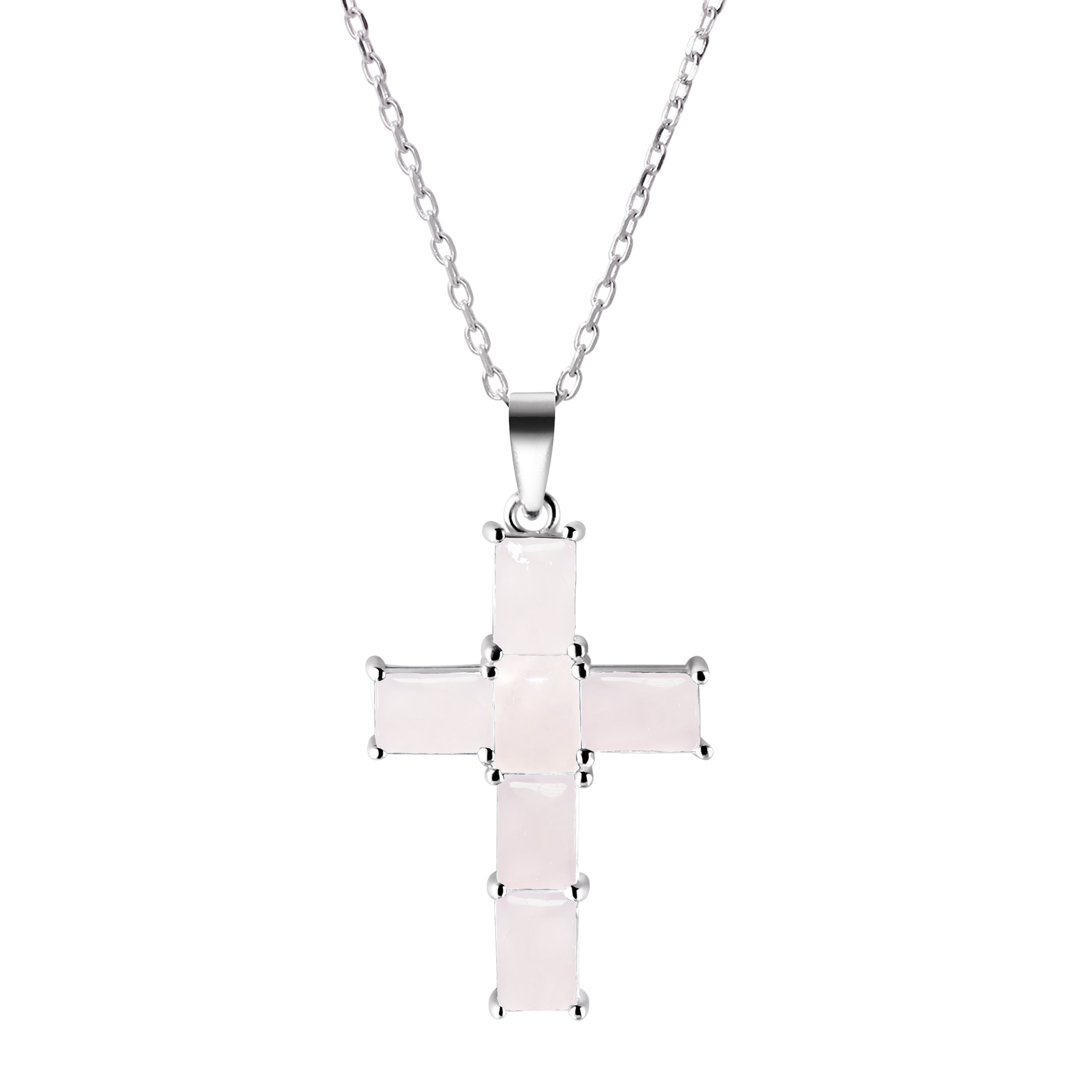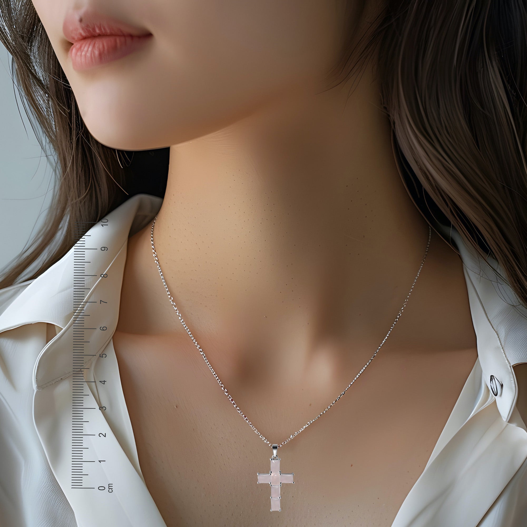 Elevate your style with this exquisite rose quartz crystal and sterling silver cross pendant necklace by Franki Baker. Crafted with meticulous attention to detail, this necklace features a striking cross...