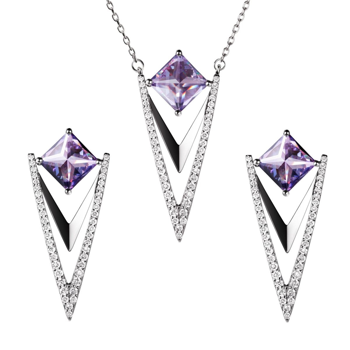 The design of this Sterling Silver & Amethyst CZ (Cubic Zirconia) pendant necklace & earring set has been inspired by the Art Deco Art Movement. They are unusual not only...