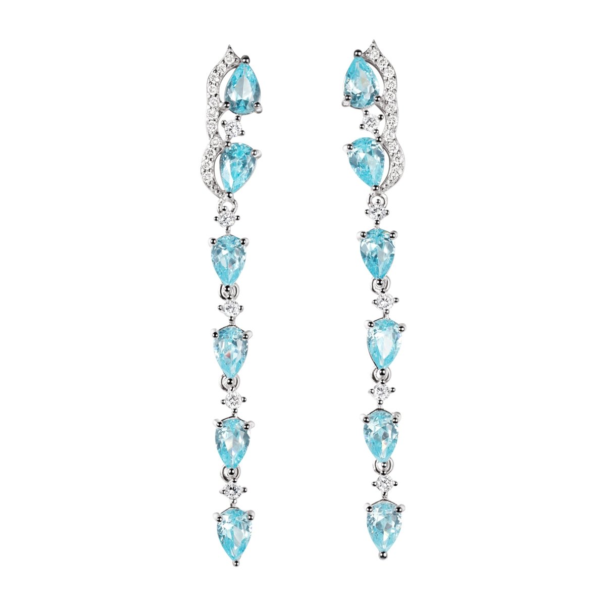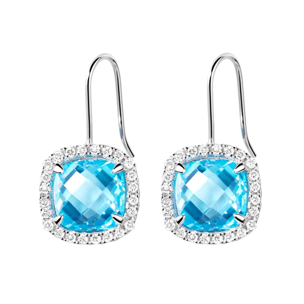 The design of these Aquamarine Blue CZ (Cubic Zirconia) & Diamond CZ Sterling Silver earrings has been inspired by the Art Deco Art Movement. The earrings are unusual not only...