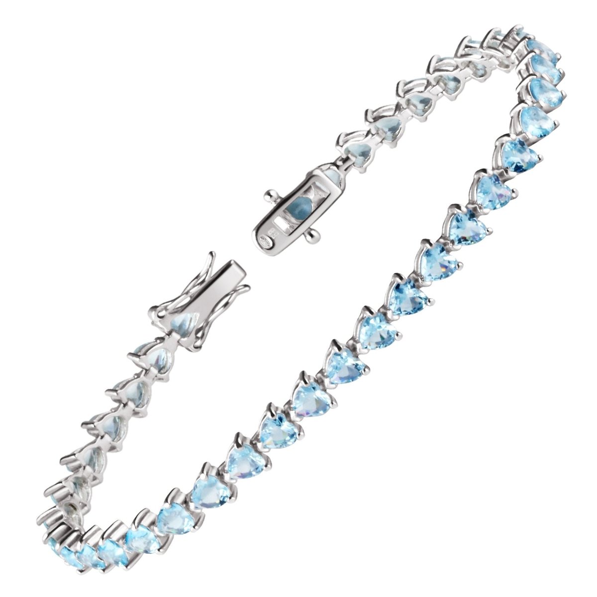 Pretty Facetted Heart Shaped Ruby Cubic Zirconia (CZ) Crystals are set into a 925 Sterling Silver Tennis Bracelet. This is a feminine bracelet that looks very pretty when worn. The...