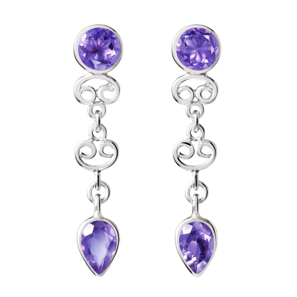 Elegant 2 stone drop natural Amethyst gemstones & 925 Sterling Silver earrings. The colour of the Amethysts gemstone is a beautiful deep purple. The earrings are set with 925 Sterling...