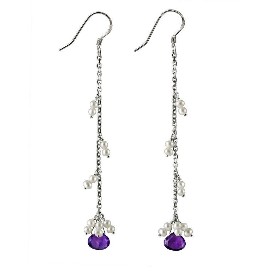 Simple and sparkly faceted purple Amethyst gemstones cascade down a fine 925 Sterling Silver chain which ends with a beautiful purple Amethyst drop. Exquisitely simple earrings. Excellent value and an...