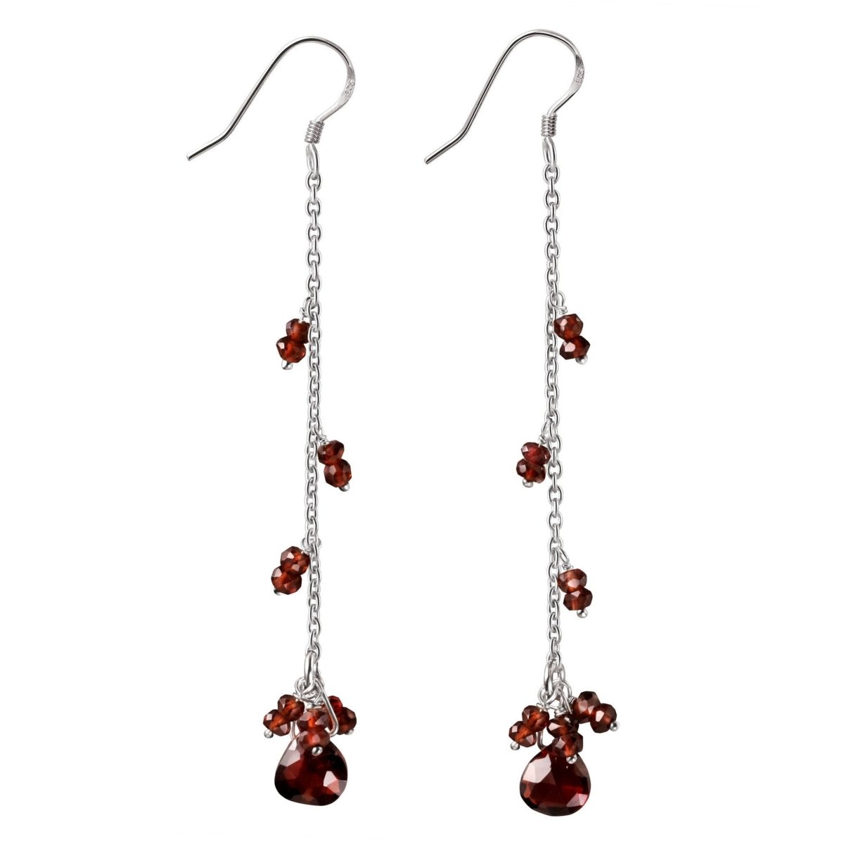 Simple and faceted deep red Garnets cascade down a fine 925 Sterling Silver chain which ends with a beautiful deep red Garnet drop. Exquisitely simple earrings. Excellent value and an...