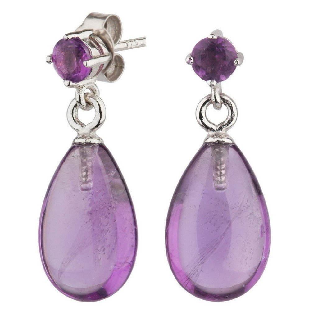 Smooth pear drop Amethyst earrings on 925 Sterling Silver. The top gemstone is faceted to catch the light and the bigger gemstone is smooth to show off the beauty of...