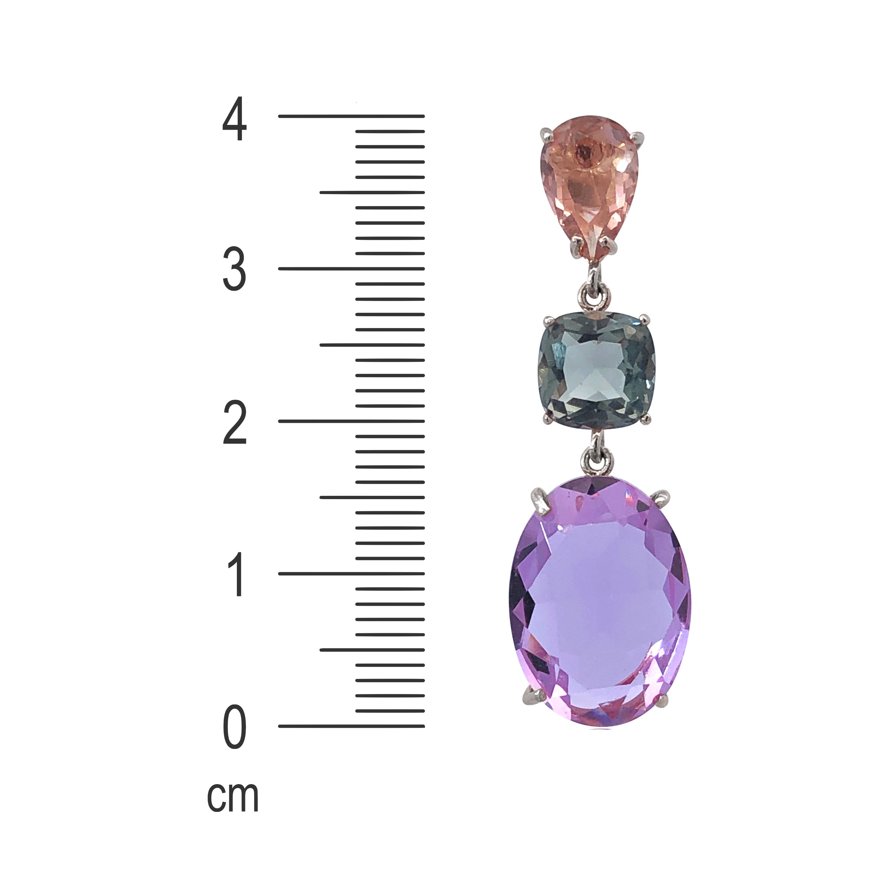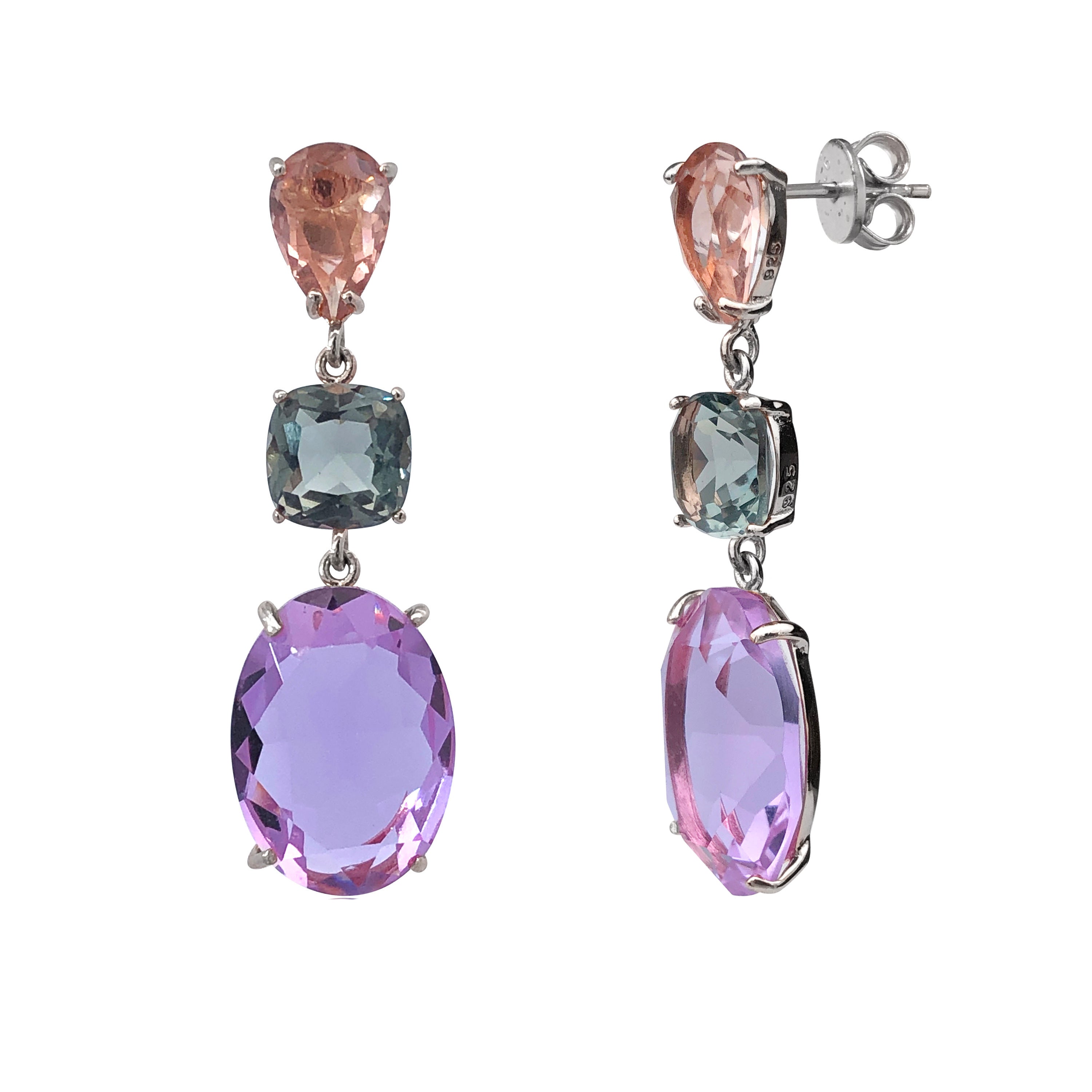 Purple Amethyst, deep red Garnet, bottle green Peridot and yellow Citrine gemstones look beautiful together on these lovely 925 Sterling Silver earrings. The natural gemstones are faceted to capture the...