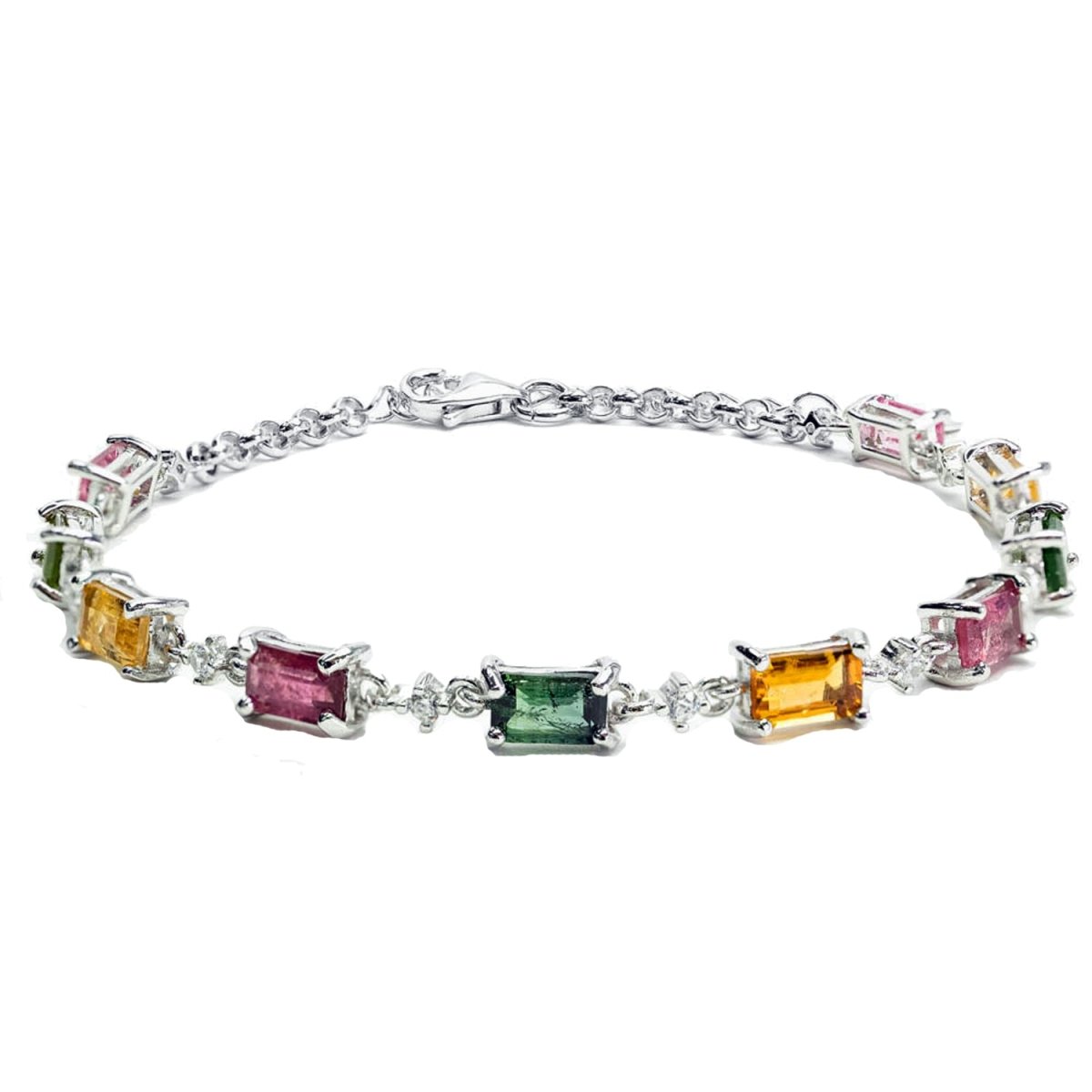 Beautiful natural different coloured A+ grade Tourmaline Gemstone expertly cut in a Baguette cut. The colour is so pretty and are set off with a classic round cut Zircon which...