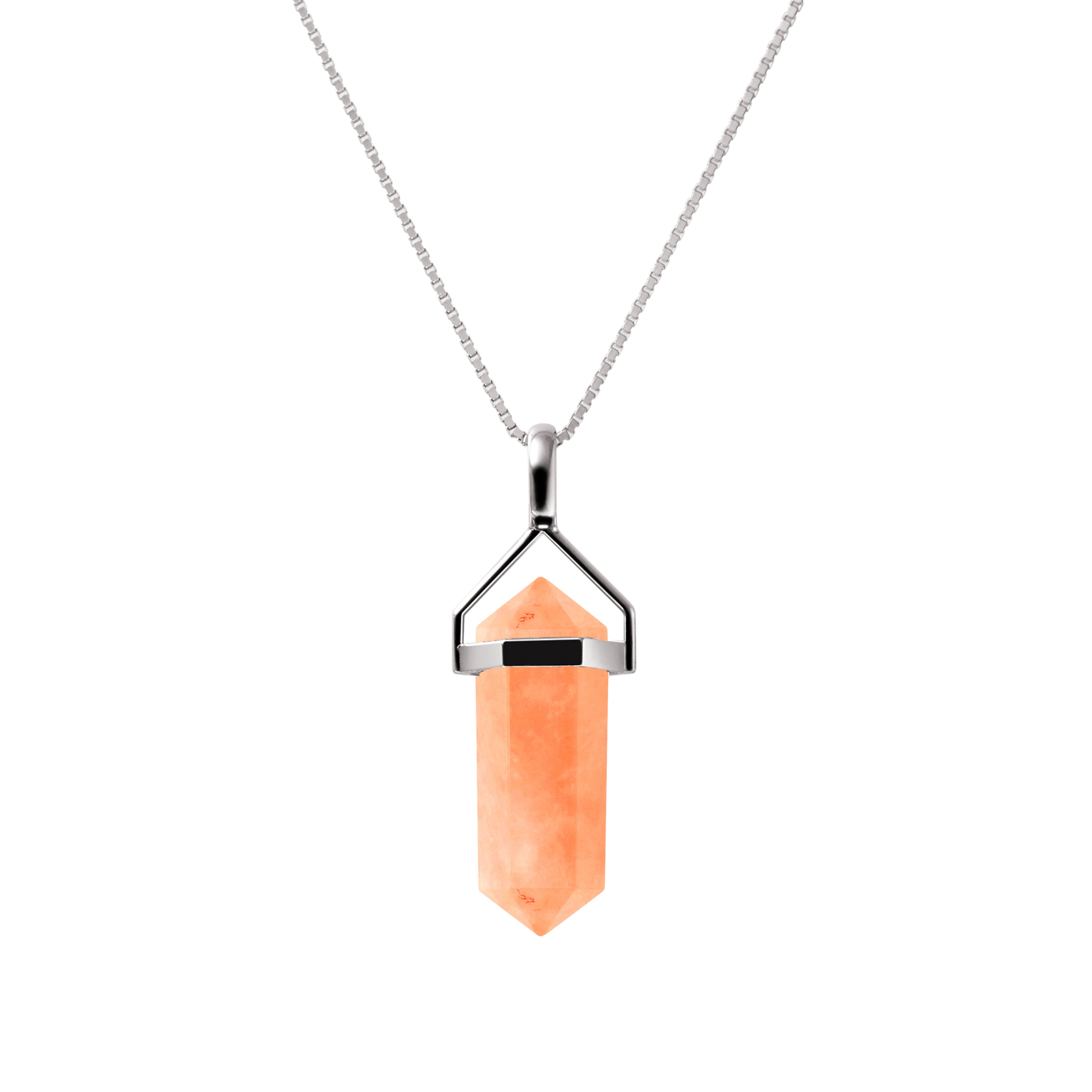 Small natural orange Carnelian gemstone double point pendant necklace set with 925 Sterling Silver. This is a pendant that can be worn at any time. The beautiful semi transparent milky...
