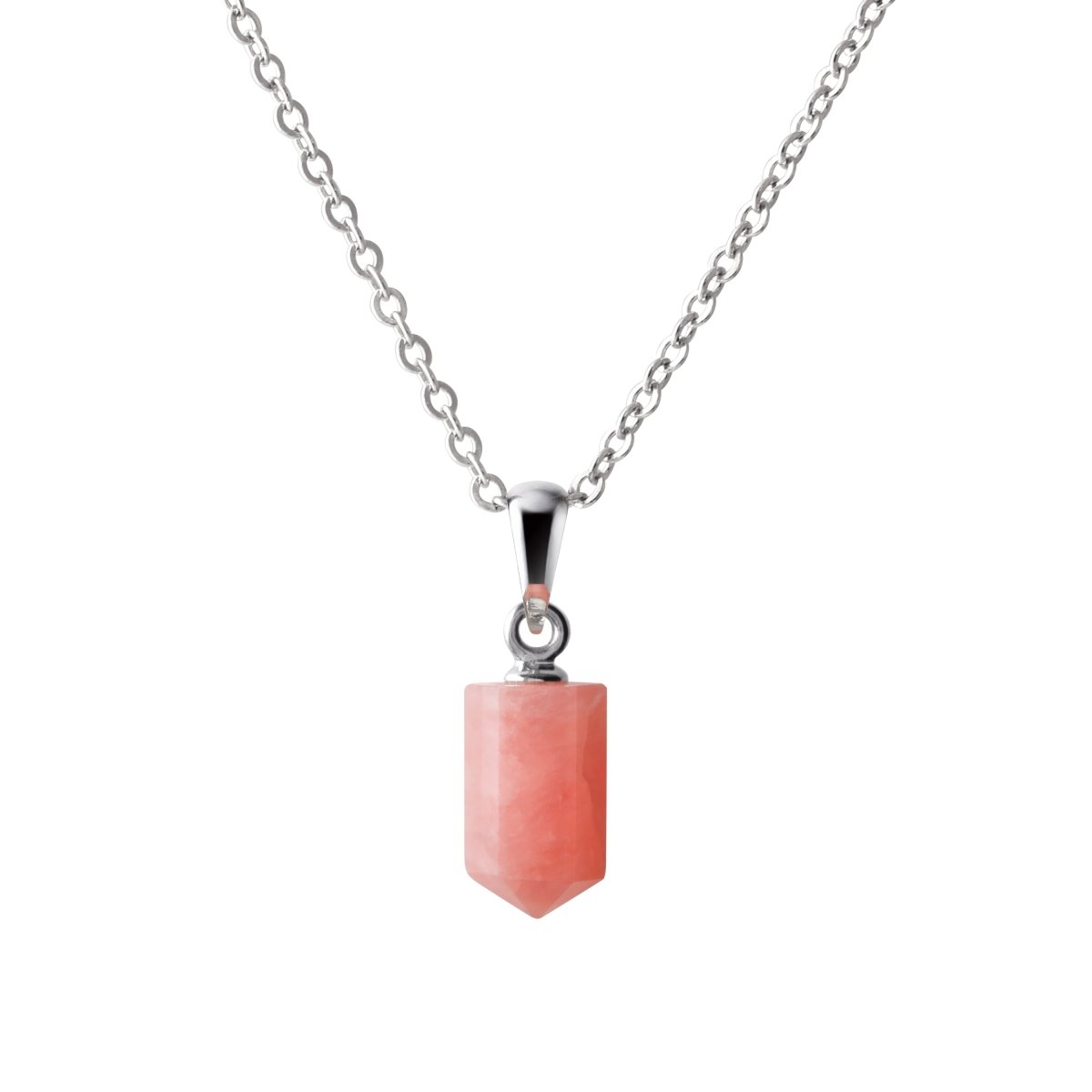 Dainty Peach/Pink Rhodocrosite Gemstone Single Point Pendant with Sterling Silver. Chain Length: 50cms. This is a beautiful dainty and unusual gemstone. A very attractive a peach/pink colour. Excellent Gemstone Grade...