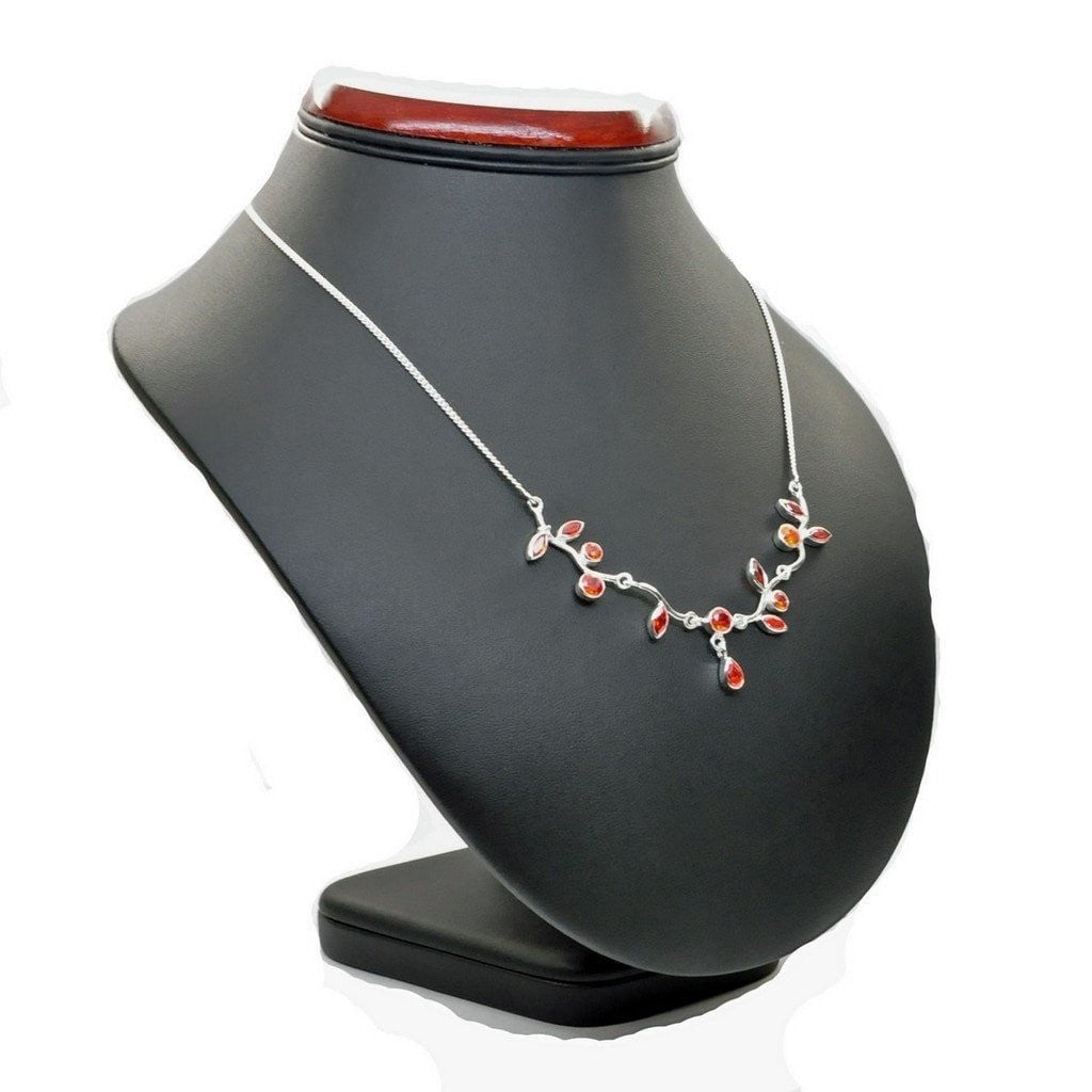 Exquisite necklace with faceted teardrop shaped red/orange Carnelian gemstones hanging on a delicate fine 925 Sterling Silver chain. The length around the neck is 17inches/44cms with a 6cm/2.5inch pendant chain...